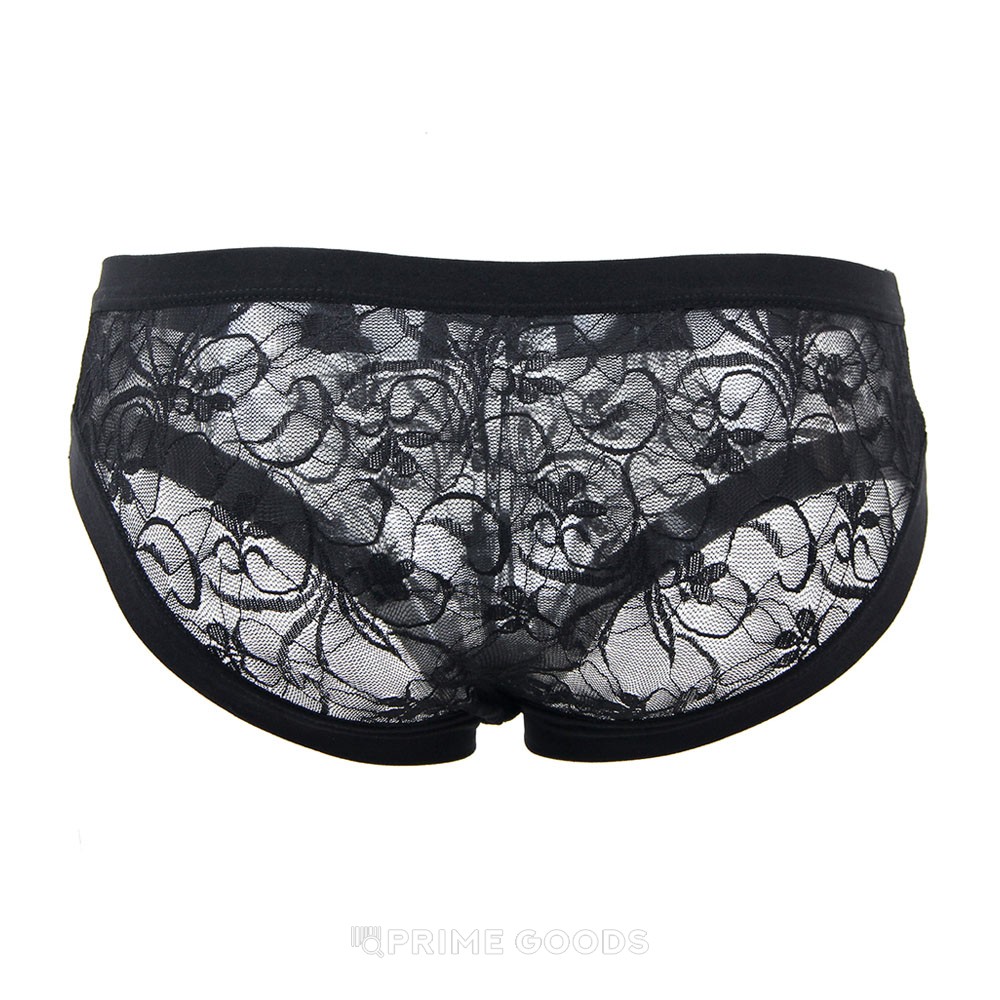 Мужские трусики-танга (чёрные, полупрозрачная фактура с узором)