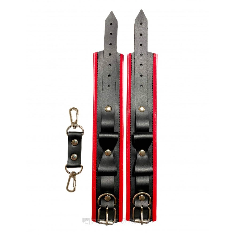 Наручники с бантиками БДСМ Арсенал (эко-кожа, чёрно-красные)