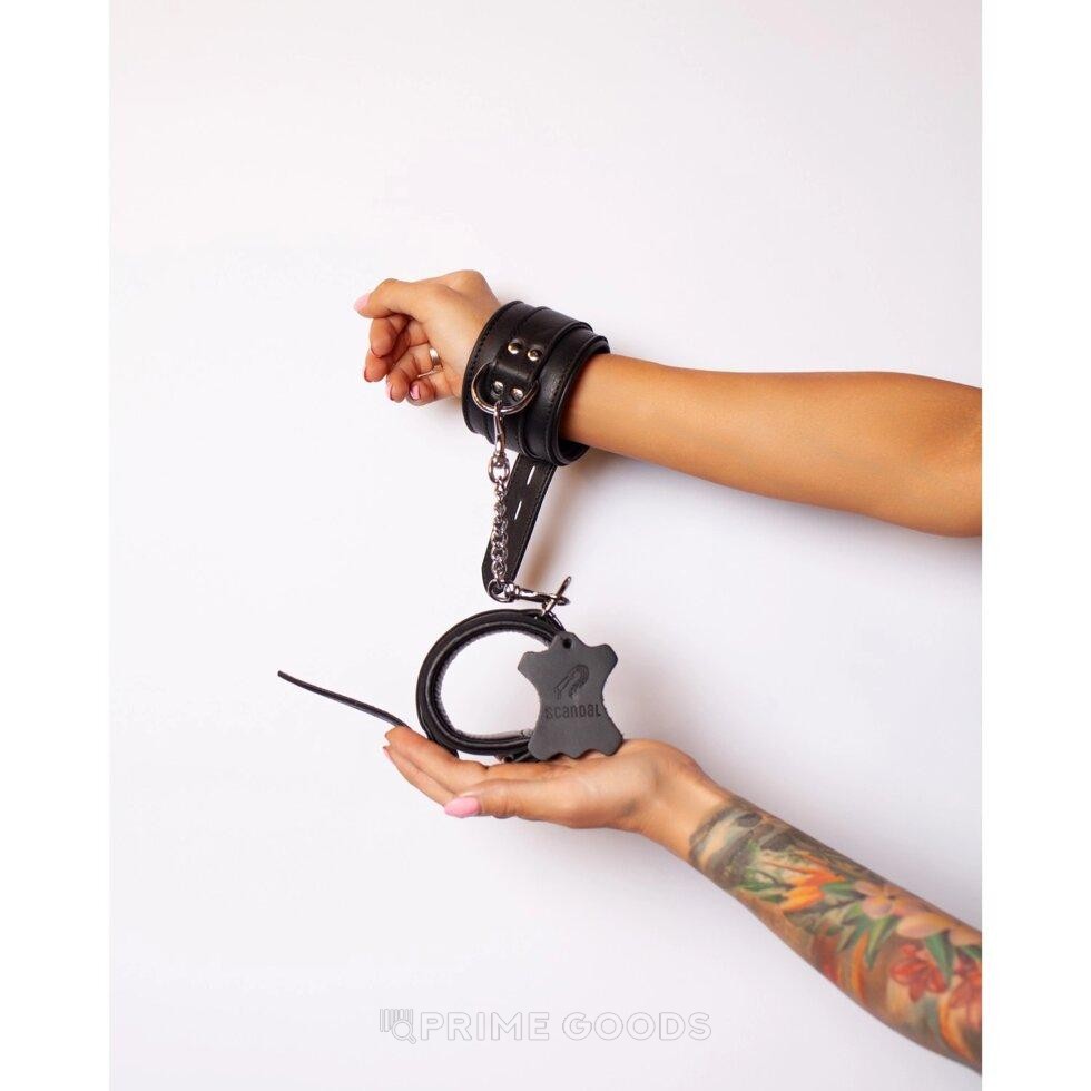Наручники Scandal из натуральной кожи и соединителем из нержавеющей стали