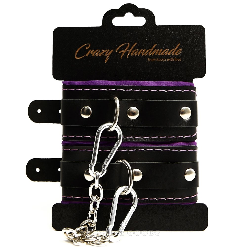 Эти наручники сочетают в себе элегантный стиль и комфорт. Черная кожа с мягкой фиолетовой подкладкой создает эффектный контраст, который привлекает внимание, а скругленная форма гарантирует удобство в носке, даже при длительном использовании.