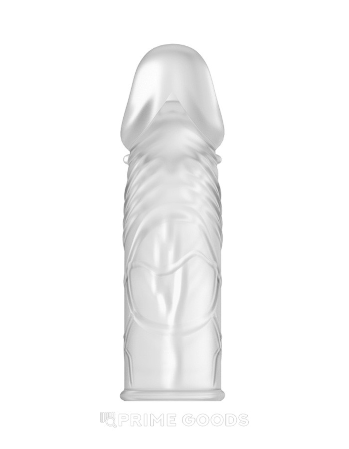 Насадка на пенис изготовлена из гипоаллергенного и эластичного материала, который мягко обхватывает пенис, повторяя его форму, как вторая кожа. Она увеличивает длину члена на 2,5 см и расширяет головку на 5%, создавая ощущение более полной наполненности и дополнительной стимуляции влагалища за счёт рельефа с венами. Насадка способствует продлению полового акта, замедляя эякуляцию, и делает секс более чувственным и насыщенным для обоих партнёров.