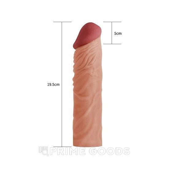 Многоразовая насадка с реалистичной формой и выраженным рельефом. Внешняя текстура имитирует продольные бороздки и венозный рисунок, что создаёт ощутимый контакт при поступательных движениях. Головка с уплотнением помогает сохранять форму и направленность хода. Полость надевается на эрегированный пенис; наружная часть задаёт стабильные габариты. Заявленные размеры: длина около 18,5 см, диаметр около 3,9 см.