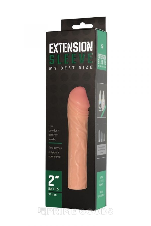 Extension Sleeve — насадка-удлинитель реалистичной формы с выраженной головкой и фактурой вен. Конструкция увеличивает общую длину и добавляет охват за счёт толщины стенок. Базовые размеры изделия — длина 17 см и диаметр 4,5 см. Цвет — бежевый.
