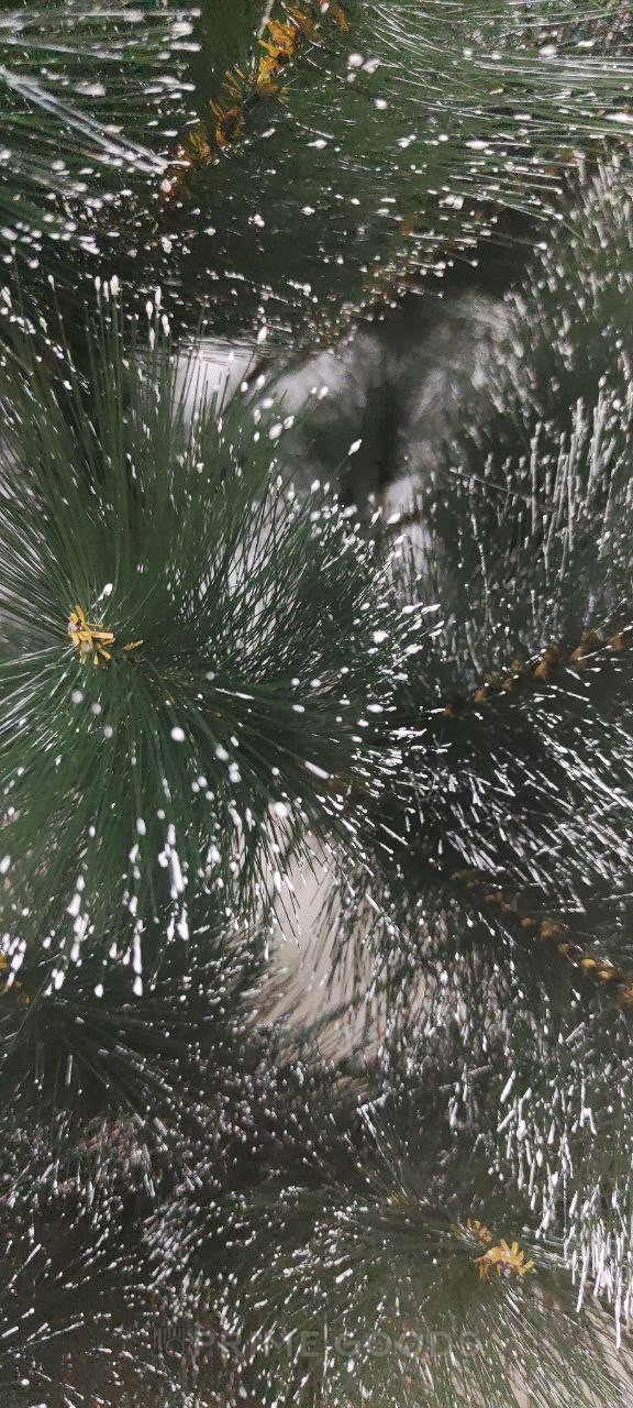 Искусственная хвоя выполнена из качественных материалов с аккуратным снежным напылением, имитирующим эффект свежевыпавшего снега. Ветви выглядят пышно и реалистично, легко расправляются и хорошо держат форму, позволяя удобно размещать ёлочные украшения и гирлянды.