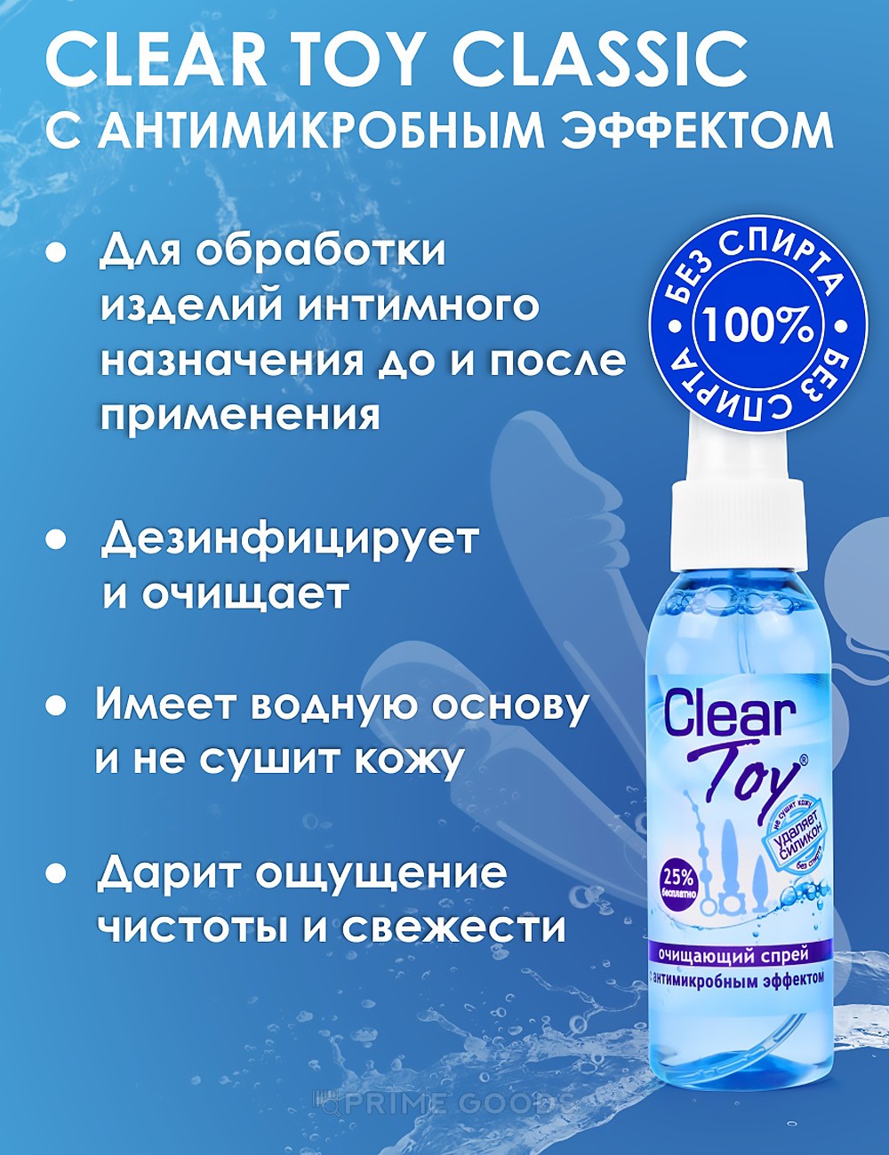 Интимные аксессуары требуют особого ухода, чтобы сохранять чистоту и продлевать срок службы. Спрей CLEAR TOY поможет сделать это быстро, удобно и безопасно. Его формула эффективно очищает поверхность, придаёт ощущение свежести и не повреждает материалы.