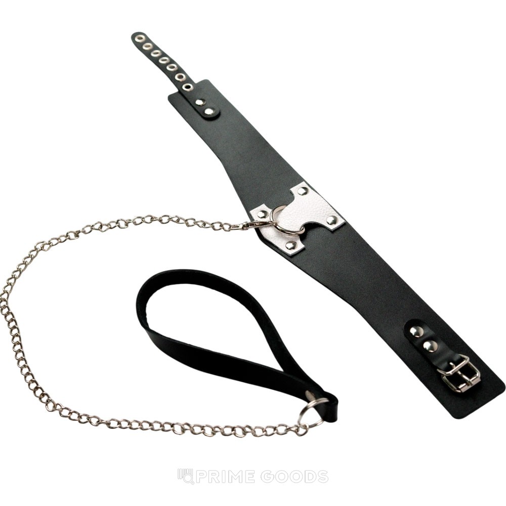 В комплект входит поводок с прочной стальной цепочкой, карабином и удобной ручкой-петлёй из натуральной кожи, что делает аксессуар не только эффектным украшением, но и практичным инструментом для игр и образов с характером.
