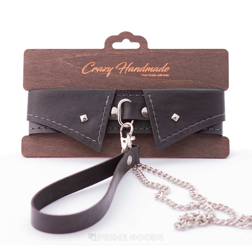Ошейник-воротник из натуральной кожи с поводком от Crazy Handmade