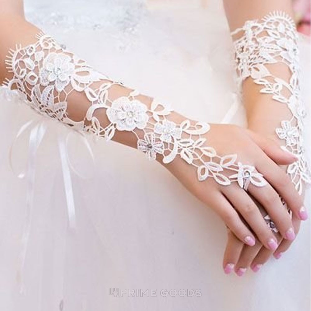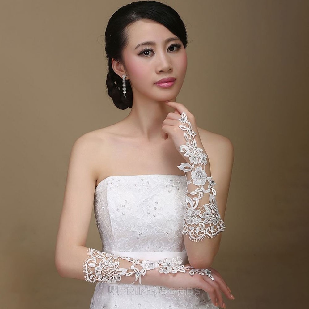 Белые кружевные перчатки с открытыми пальцами и стразами