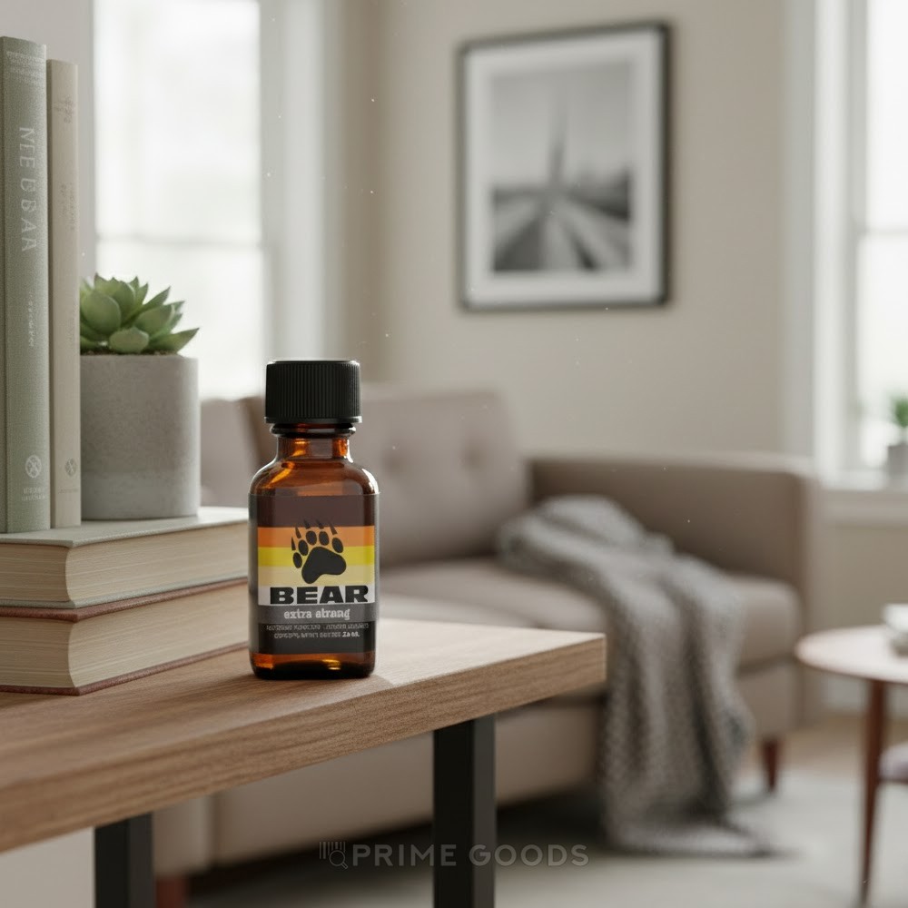 Попперс Bear — летучее ароматическое вещество для ингаляционного применения во флаконе объёмом 24 мл. Продукт относится к категории попперсов и используется путём вдыхания паров в хорошо проветриваемом помещении с соблюдением мер предосторожности. Характеризуется мощной силой действия. Эффект проявляется практически моментально — в течение нескольких секунд после вдоха — и носит выраженный, интенсивный характер. Флакон объёмом 24 мл рассчитан на многократное применение. Формат удобен для хранения и дозированного использования. Продукт применяется исключительно по назначению и не предназначен для приёма внутрь. Использование допускается только совершеннолетними. После применения запрещено управление транспортными средствами. Не допускается сочетание с алкогольными напитками, наркотическими веществами и секс-стимуляторами. Допускаются различные способы применения: ингаляция паров на расстоянии, использование специальных аксессуаров для попперсов, а также испарение продукта в помещении. Независимо от выбранного способа необходимо избегать прямого контакта жидкости с кожей и слизистыми оболочками.