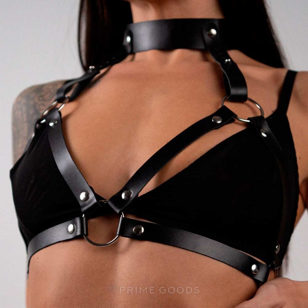 Портупея "Модель №1" от Crazy Handmade — это смелый и стильный аксессуар, созданный для тех, кто ценит элегантность и сексуальность в каждой детали. Выполненная из натуральной кожи и дополненная прочной фурнитурой, эта портупея представляет собой уникальное сочетание открытого бра и ошейника, соединенных хромированными кольцами.