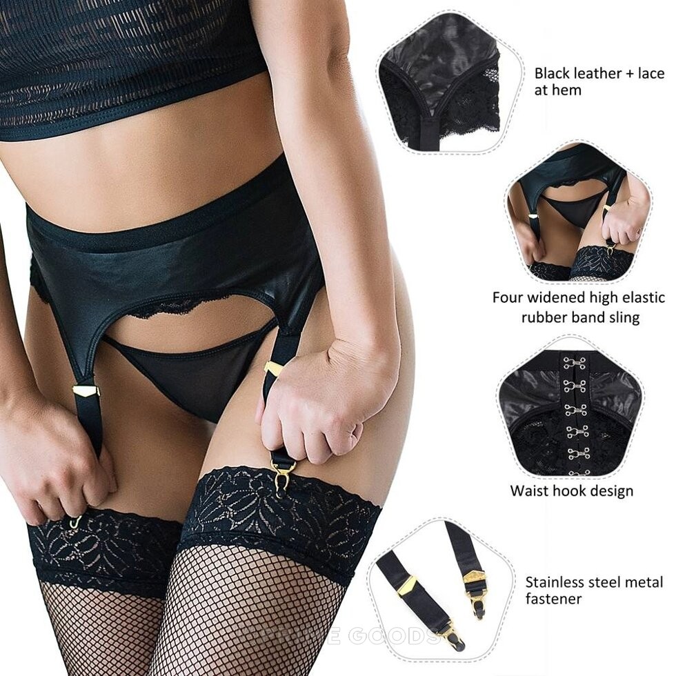 - Пояс с подвязками и стрингами (кружева+кожа, размер 3XL)