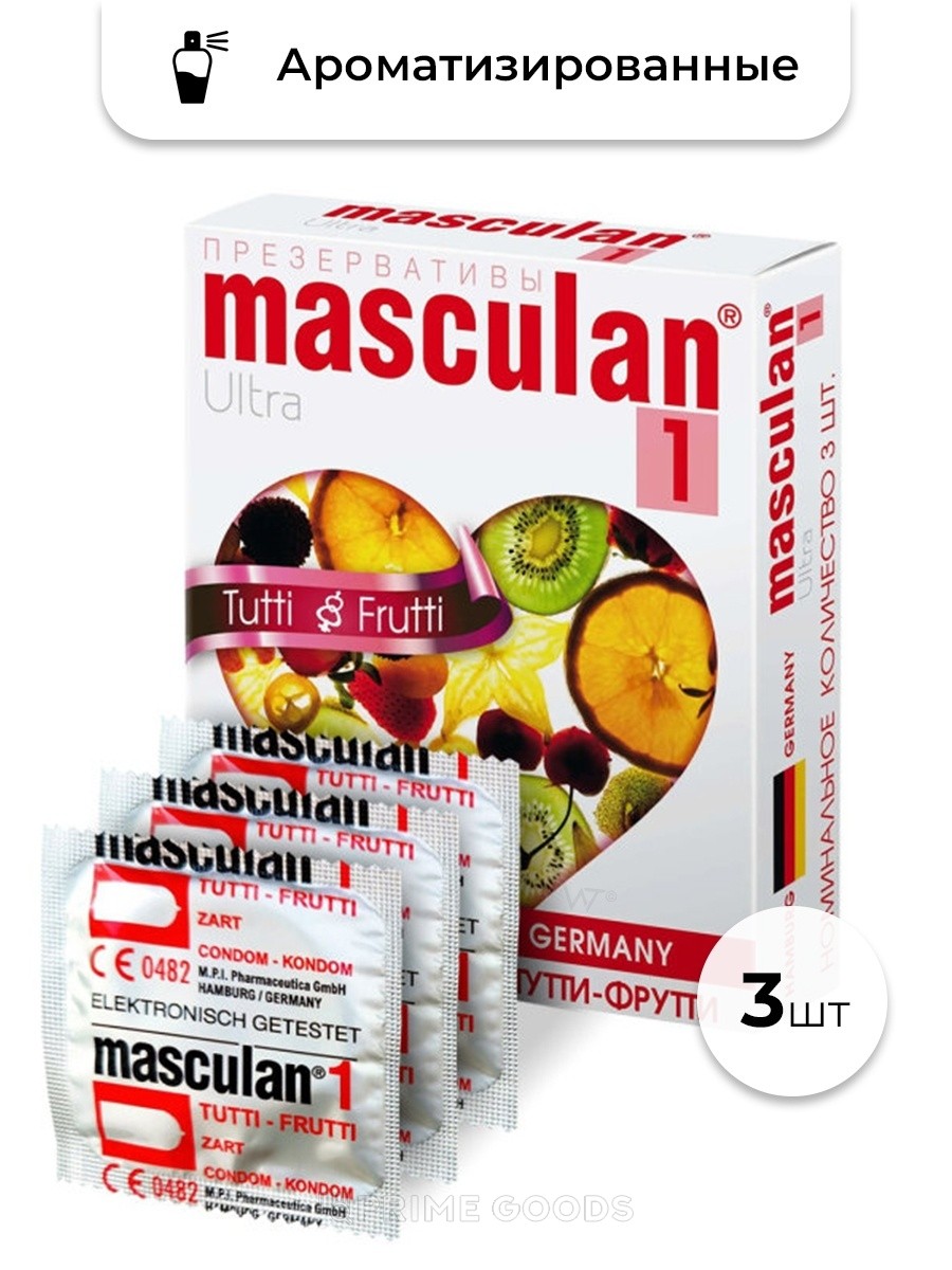 Презервативы MASCULAN 1 ULTRA тутти-фрутти, ароматизированные, 3 шт.
