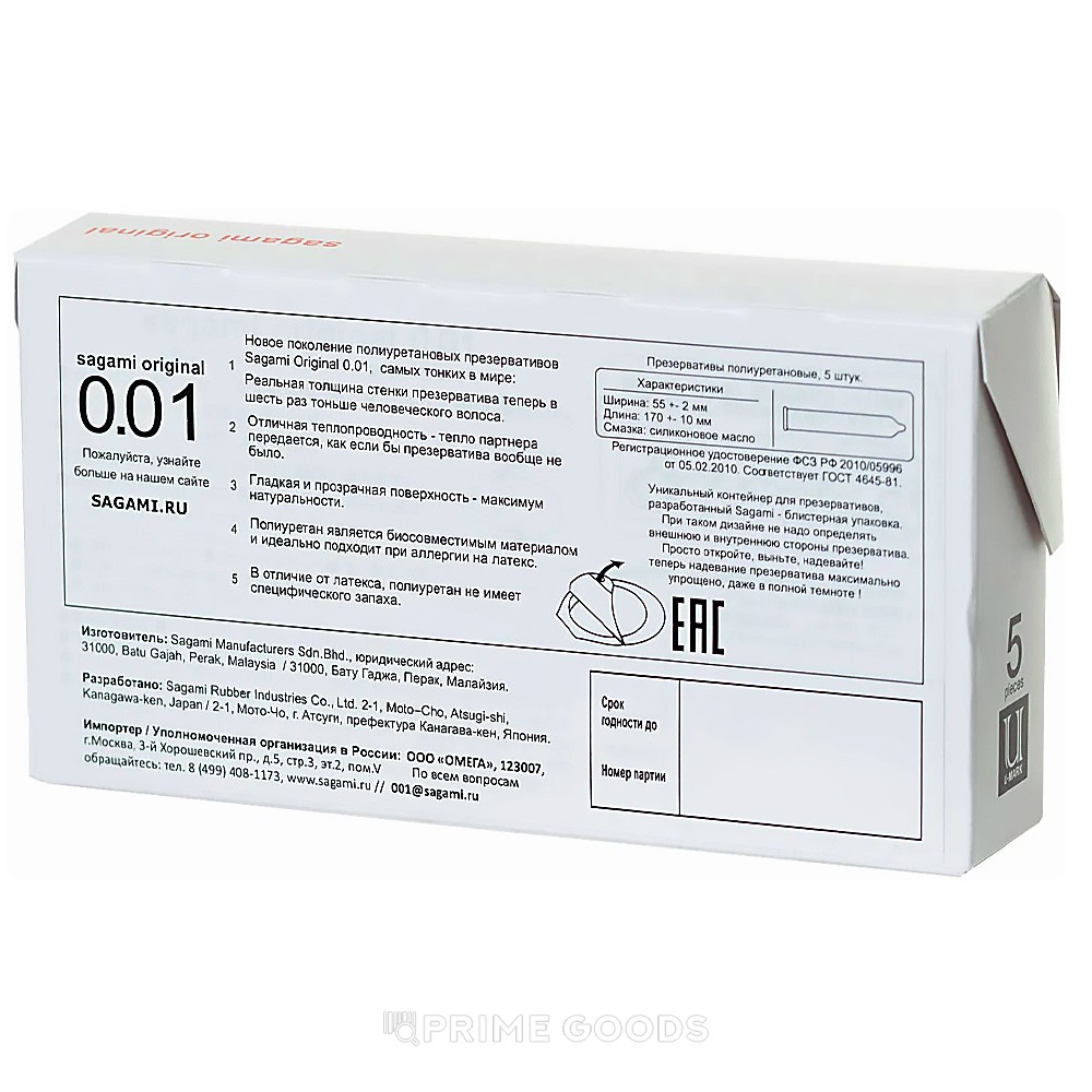 Презервативы полиуретановые SAGAMI Original 0.01, 5 шт.