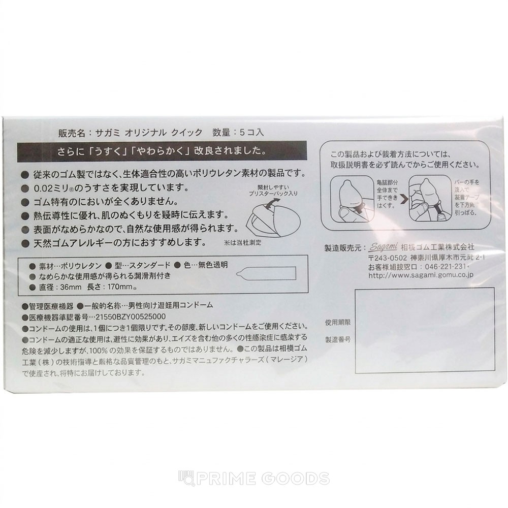 Презервативы SAGAMI Original 002, Quick _ j, полиуретановые, 5 шт