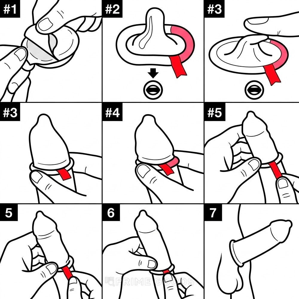 - Потяните за ленту, чтобы быстро и ровно распределить презерватив.
