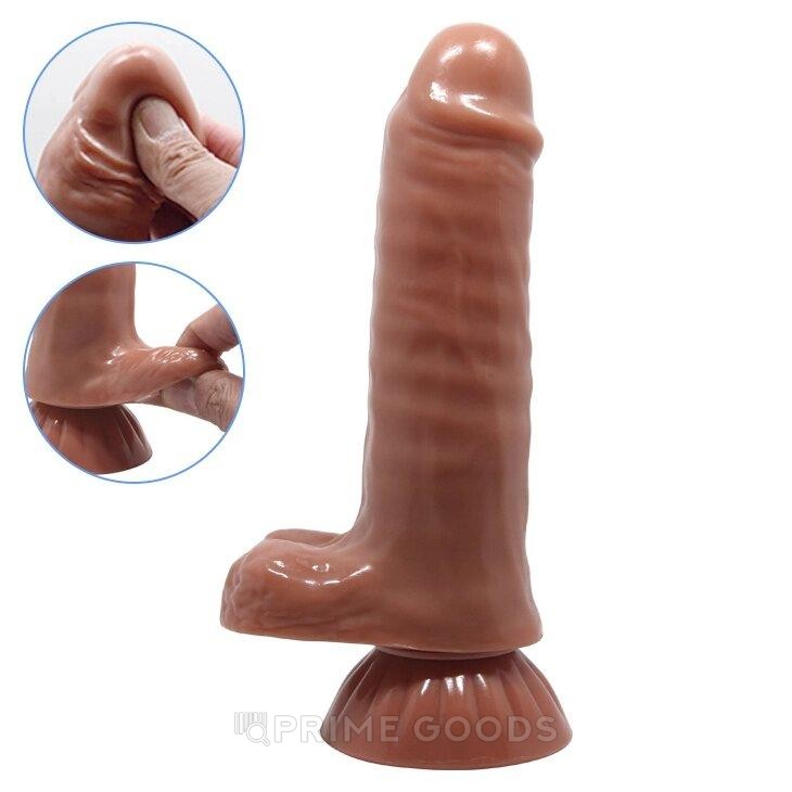 Выполнен девайс из приятного на ощупь, гипоаллергенного материала в коричневом цвете. Полностью повторяет формы настоящего члена, благодаря чему ощущения максимально реалистичны. Ярко-выраженная головка, выпуклые венки по всему стволу и мощная мошонка простимулируют каждый сантиметр вашей эрогенной зоны. А прочная съёмная присоска позволяет освободить руки и целиком отдаться удовольствию.