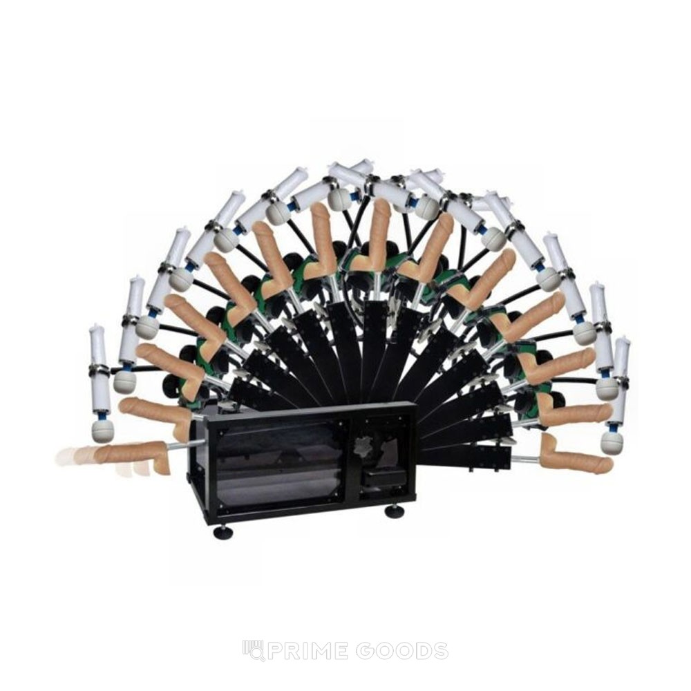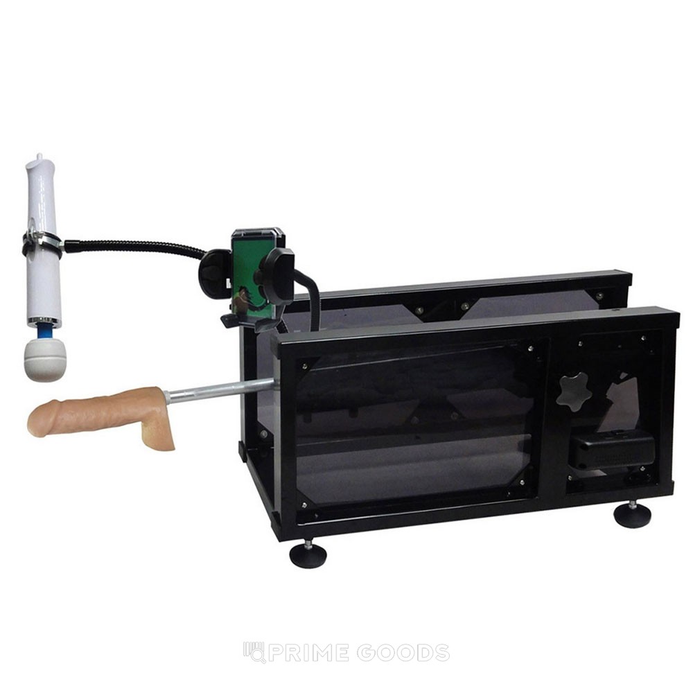 В комплекте: секс-машина, блок питания, пульт, 2 насадки, переходник для двойной стимуляции, удлиняющий шток, держатель для смартфона, масло, держатель для вибратора Хитачи