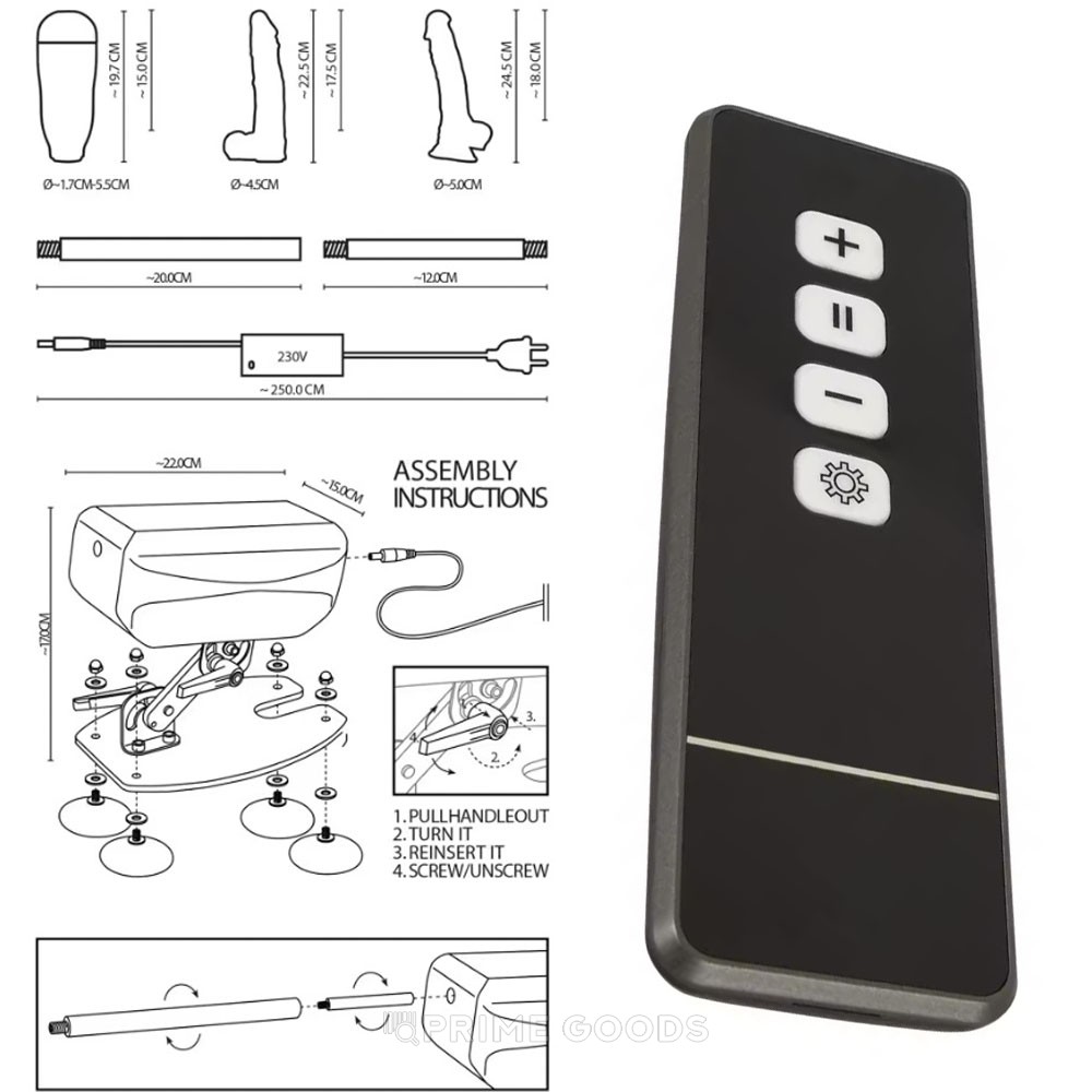 Устройство оснащено пультом дистанционного управления с рабочим радиусом до 15 метров. Выбирайте из 10 режимов и 33 скоростей, адаптируясь к любому настроению — от мягкой прелюдии до безумного ритма. Длина хода составляет 4,5 см, что вкупе с высокой частотой фрикций создаёт реалистичное ощущение глубоких толчков.
