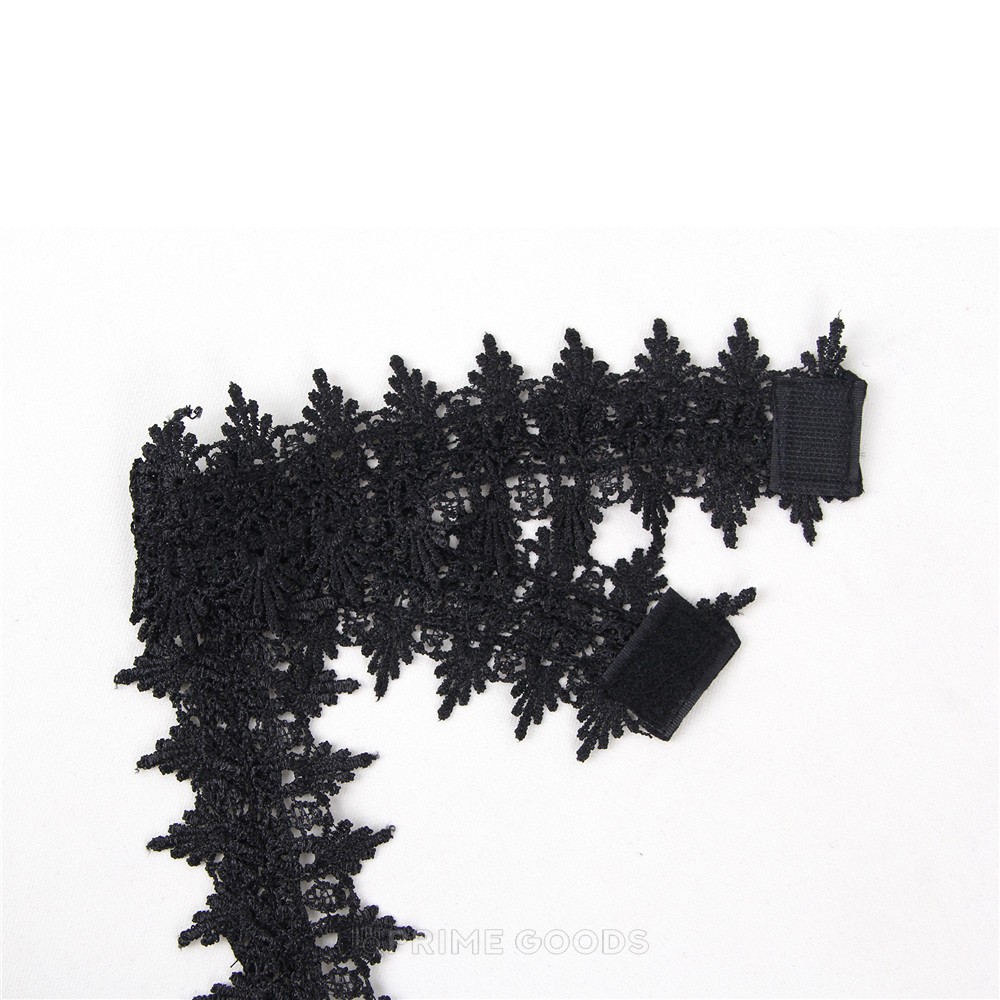 Ажурный тканый чокер, спускающийся в зону декольте добавляет общему образу нарочитой сексуальной игривости. Бюстье на сорочке имеет твердые косточки, которые поддерживают грудь и придают ей форму.