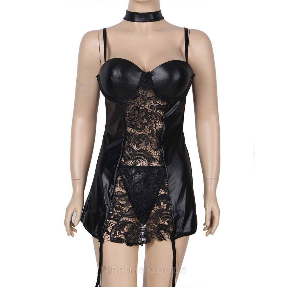 Платье кожаное с пажиками для чулок Ohyeah с кружевом +стринги