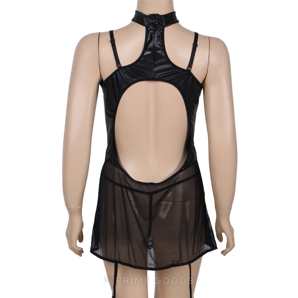 Платье кожаное с пажиками для чулок Ohyeah с кружевом +стринги, M-L