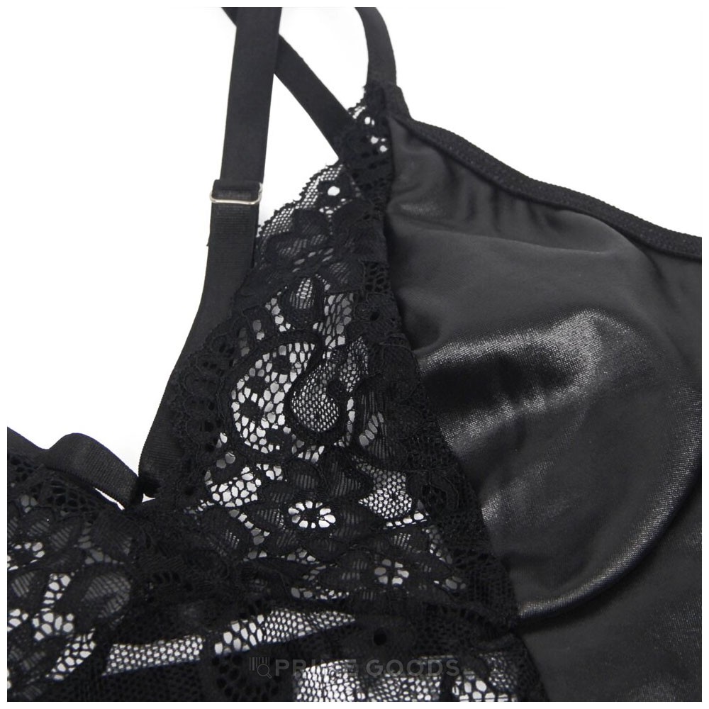Кожаное платье с кружевом и стрепами Ohyeah Sexy Black +стринги, M-L