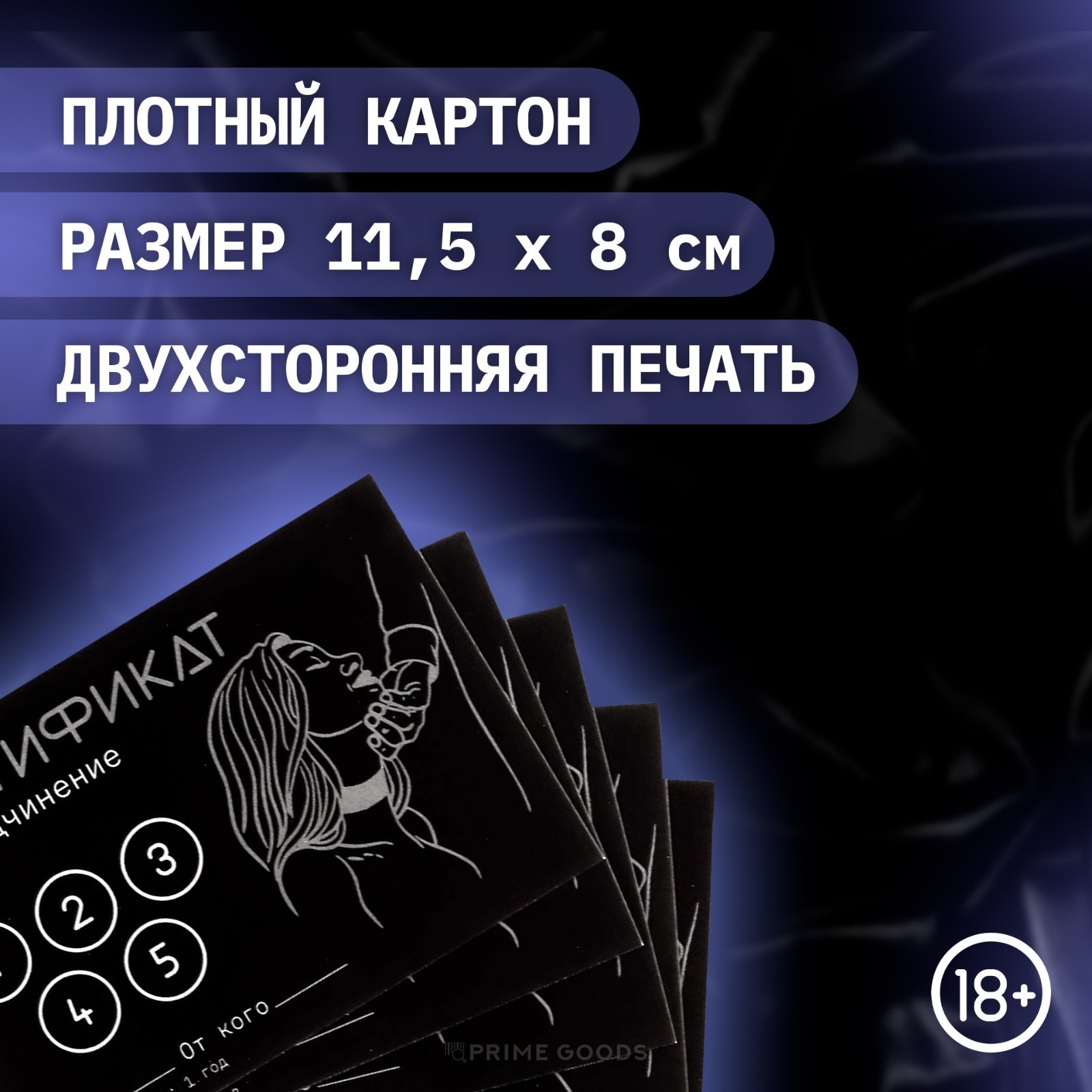 Качественная двухсторонняя печать и плотный картон придают сертификату презентабельный вид и приятную текстуру. Аккуратное исполнение делает его не только символом страсти, но и стильным аксессуаром, который можно хранить как напоминание о пережитых эмоциях. Компактный размер позволяет легко спрятать сертификат в конверт, подарочную коробку или даже в книгу - для таинственного и волнующего вручения.