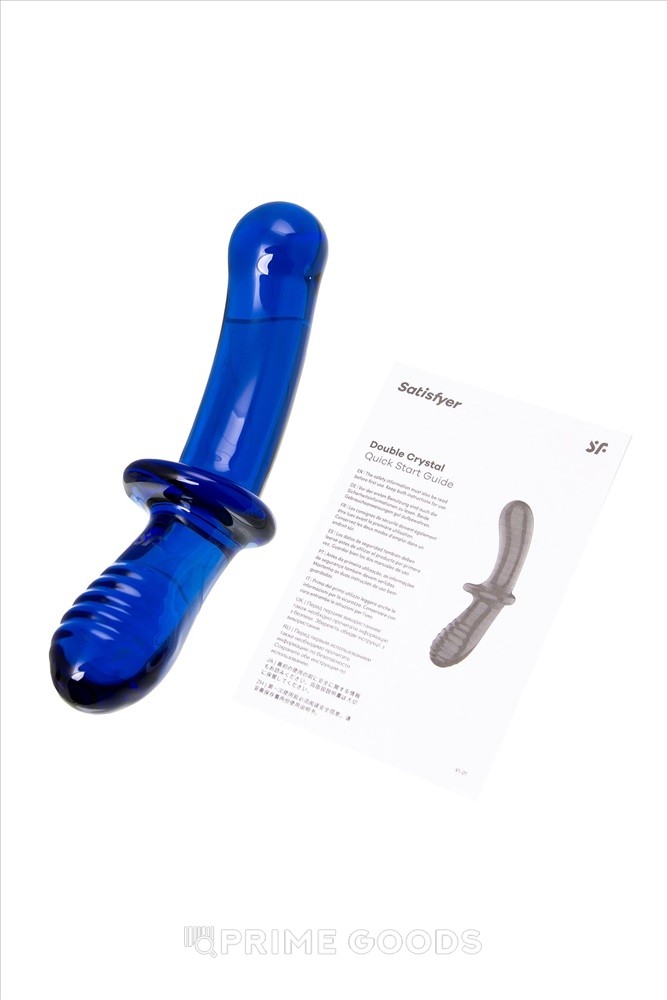 Стеклянный фаллоимитатор Satisfyer Double Crystal, 20×5,5 см, синий