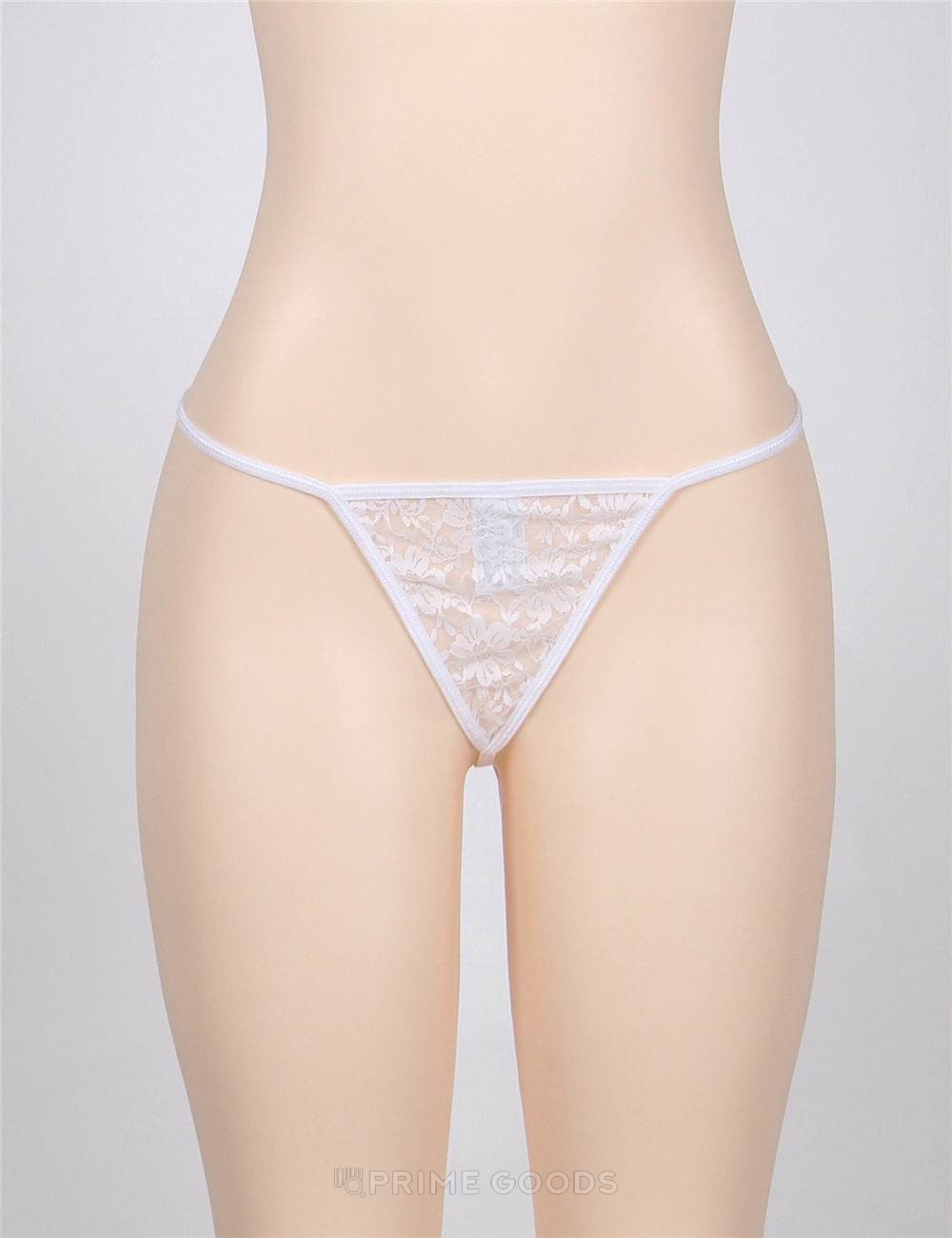 Стринги женские Delicate белые с цветочным принтом, XS-S