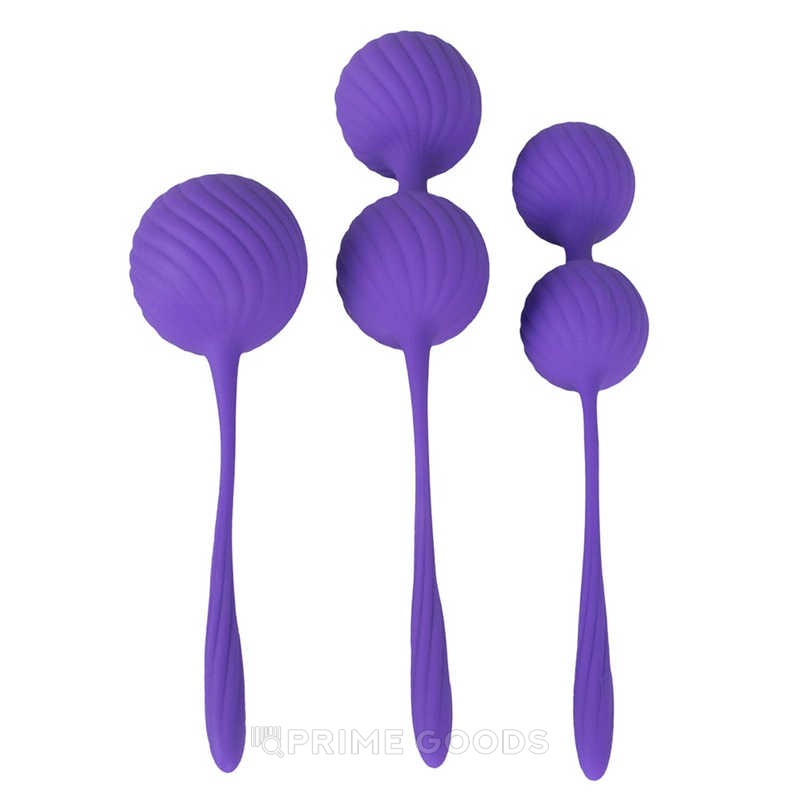 Изделия выполнены из бархатистого гипоаллергенного силикона фиолетового цвета и имеют волнистую поверхность для дополнительной стимуляции. Эластичные шнурки обеспечивают безопасное извлечение после завершения сеанса. Упражнения с этим набором можно проводить ежедневно по 10–15 минут, адаптируя интенсивность под индивидуальный уровень подготовки.