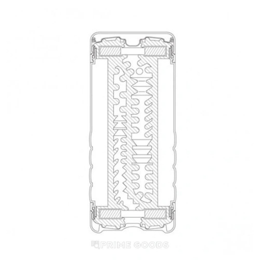 Структуры внутри каналов имеют отличающийся рельеф и степень сжатия, что делает ощущения разными уже с первых сантиметров движения. Входные зоны выполнены с мягкой текстурой для комфортного старта, далее рельеф становится выраженнее, а общий профиль — более направленным. Мягкий эластомер обеспечивает гладкое скольжение, быстро подстраивается под анатомические особенности и сохраняет форму при корректной эксплуатации. Конструкция разработана для последовательного прохождения по рельефу без резких перепадов, а герметичный корпус помогает удерживать смазку и поддерживать нужную степень вакуумности.