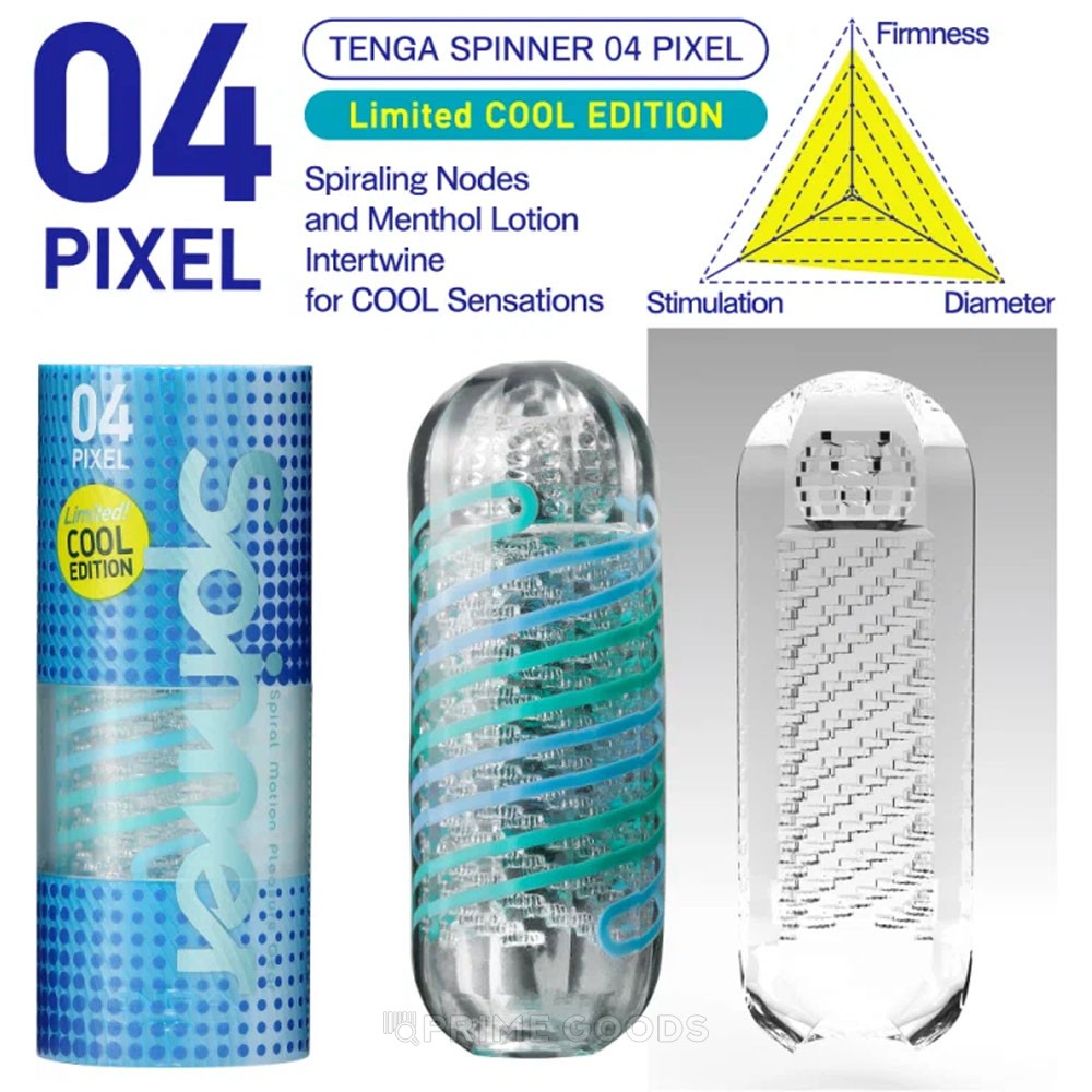 Мастурбатор TENGA SPINNER Pixel стильного бирюзового цвета готов к длительным ублажениям. Его уникальный рельеф напоминает спираль из многочисленных, твердых узлов, которые словно окутывают пенис во время фрикций. Мастурбатор осуществляет более твердую стимуляцию непосредственно на весь ствол пениса за счет упругого рельефа, что Вы несомненно прочувствуете сразу же.