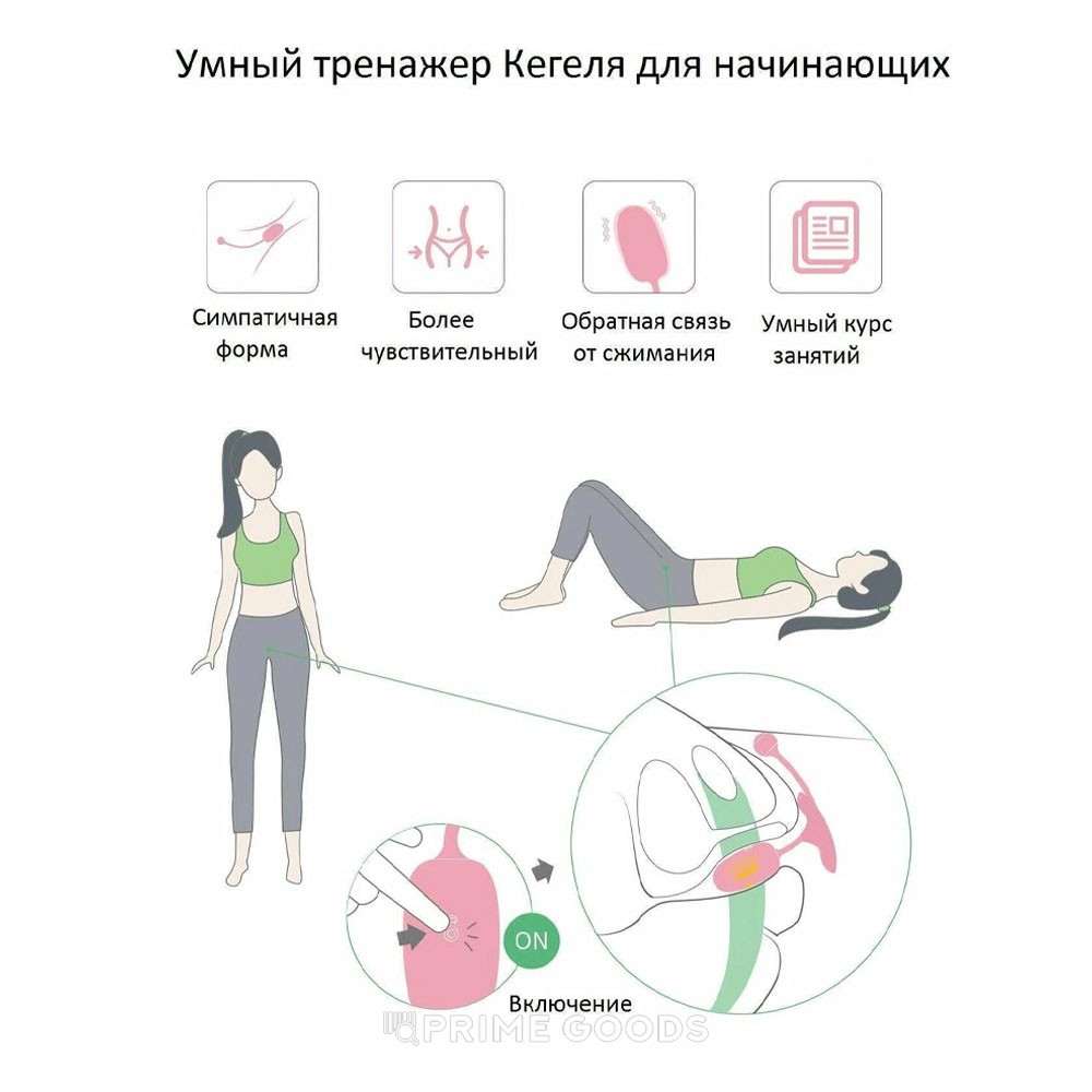 Встроенные датчики фиксируют работу мышц в реальном времени, визуализируя усилия на экране телефона. Тренажёр водонепроницаем по классу IPX6, поэтому его легко очищать под проточной водой. Магнитный разъём в хвостике упрощает подзарядку, а гибкий хвостик и фиксатор обеспечивают безопасное извлечение после сеанса.
