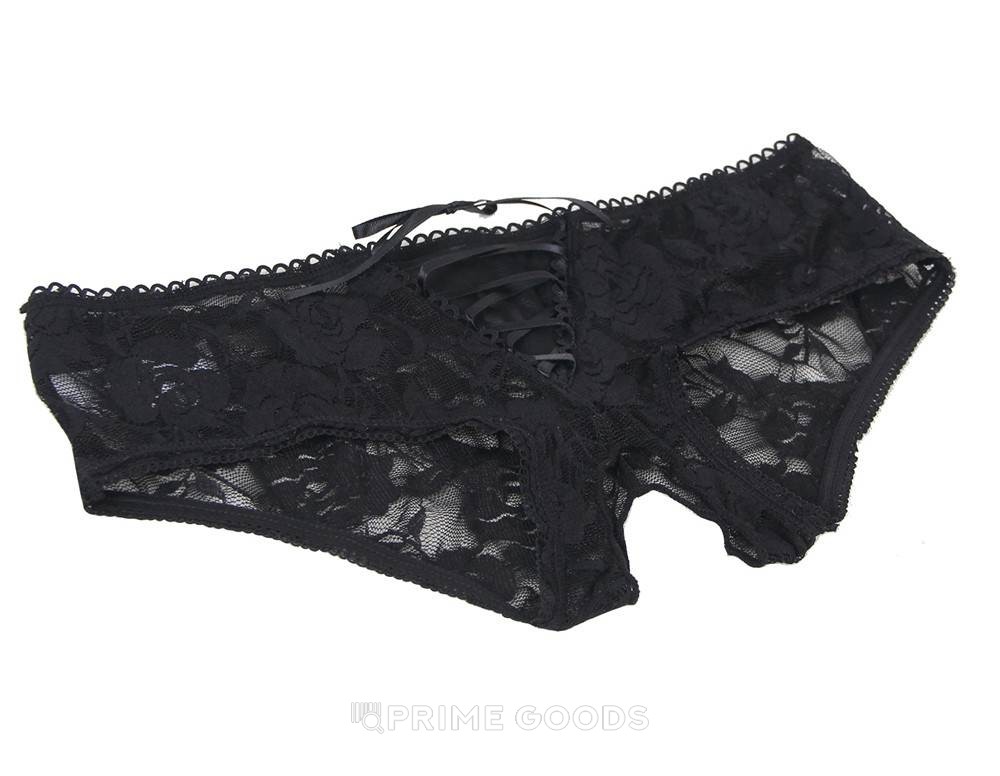 Трусики кружевные с завязками черные, 3XL-4XL