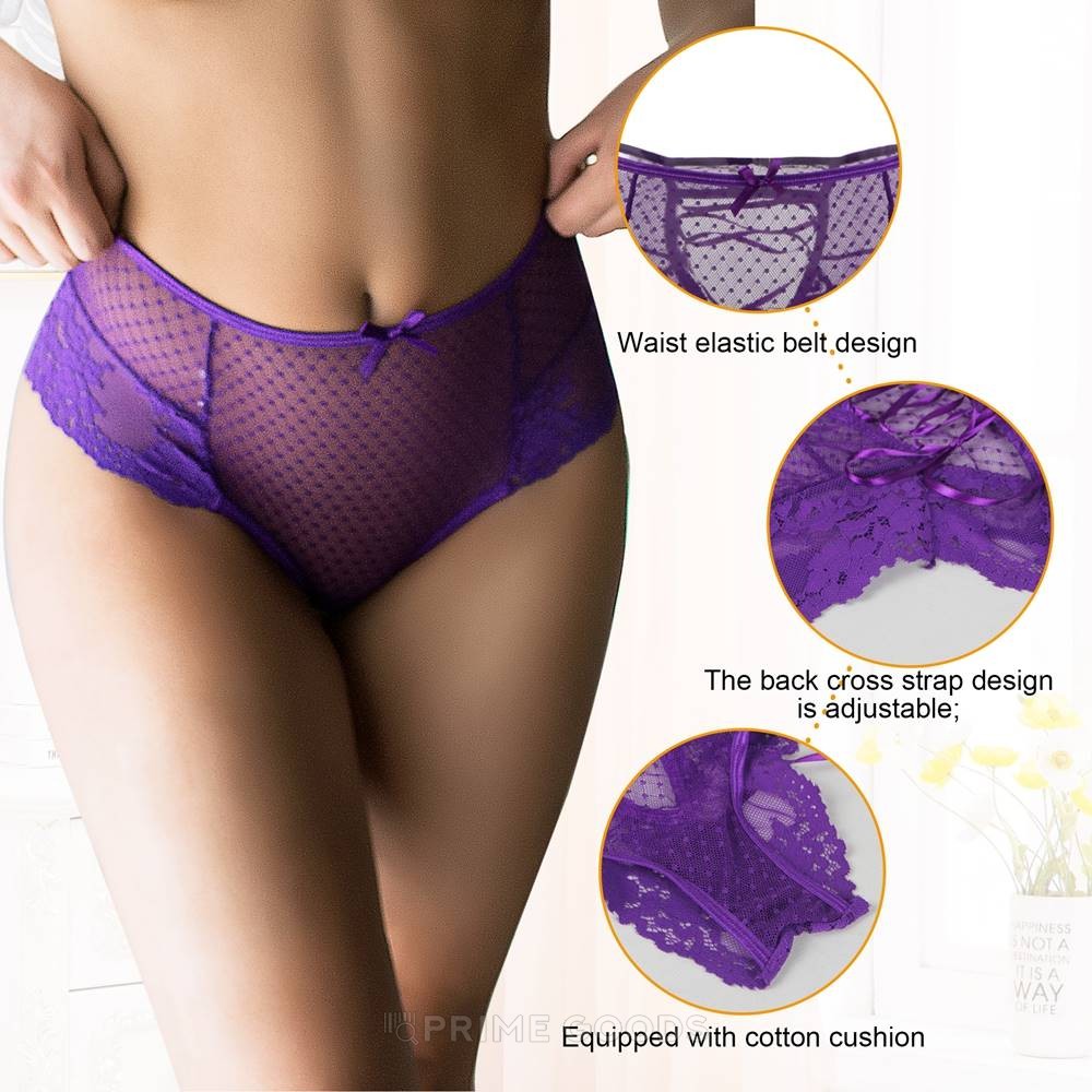 - Трусики на высокой посадке Lace Strappy, лиловые, XL-2XL