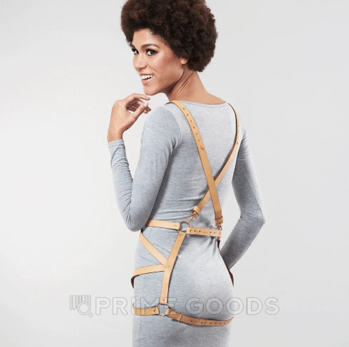 Выполненная из высококачественной натуральной кожи тёплого коричневого оттенка, упряжь идеально ложится по телу, подчёркивая силуэт и создавая настроение. Она легко адаптируется к вашему стилю: дополнит эротический образ, заиграет на обнажённом теле или добавит смелый акцент в повседневный лук.