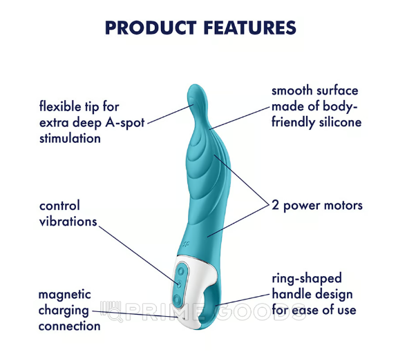 Satisfyer A-Mazing 2 — эргономичное устройство, разработанное для направленной стимуляции зоны А. Узкий гибкий наконечник помогает точечно воздействовать на расположенную глубже область, а плавные формы корпуса упрощают введение и контроль движений. Корпус выполнен из мягкого на ощупь силикона, подходящего для длительного контакта с кожей, поверхность матовая и равномерная, без выраженных швов. Модель перезаряжаемая и водонепроницаемая по стандарту IPX7, что позволяет использовать её в душе или ванне и упрощает очистку после использования.