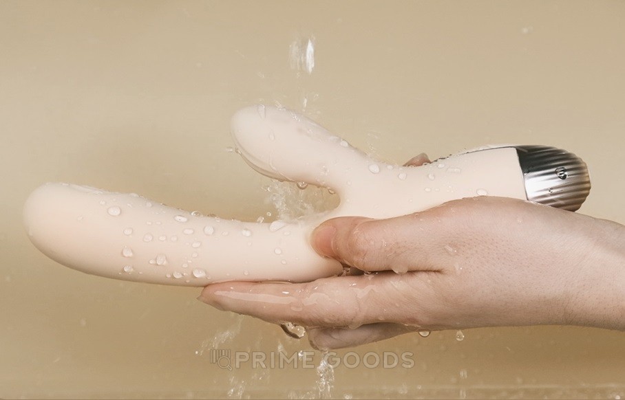 Перезаряжаемый вибратор из бархатистого гипоаллергенного силикона в бежевом цвете.