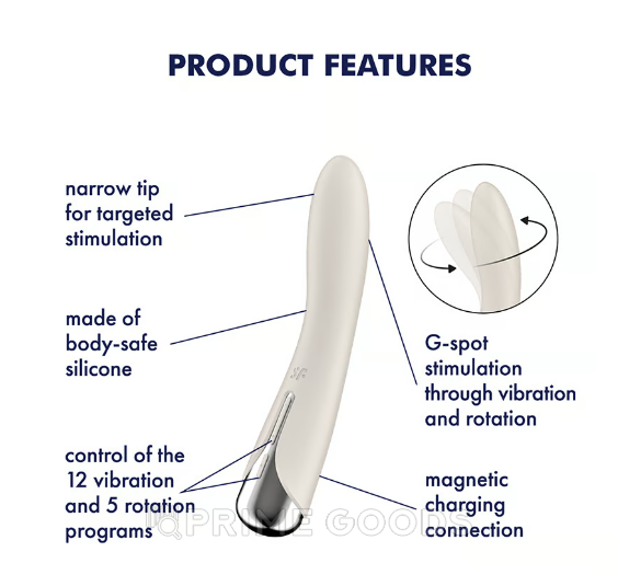 Ощутите невероятное блаженство с вибратором Spinning Vibe 1 от немецкого бренда Satisfyer. Его вращающаяся головка и мощные вибрации создают уникальную стимуляцию, направленную на точку G.