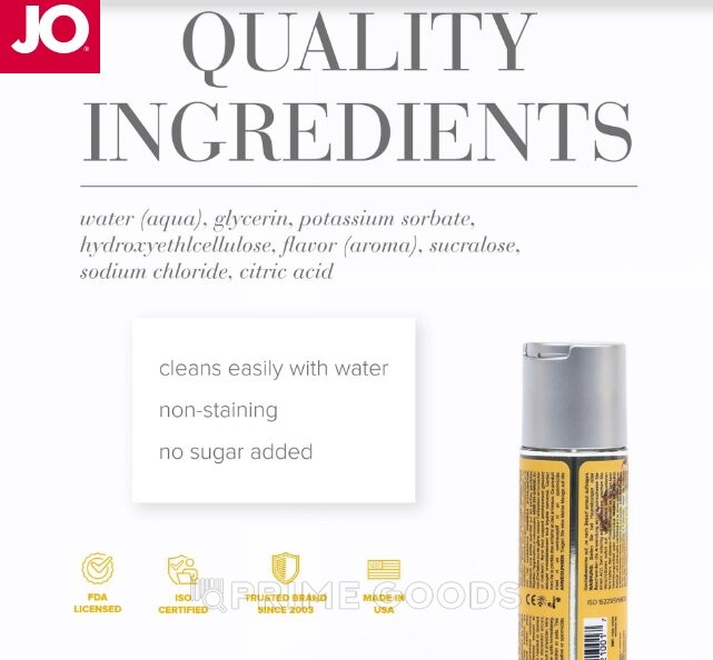 Гель на водной основе с использованием глицерина растительного происхождения и обладает вкусом одного из самых популярных коктейлей Пина Колада, который славится тропическими нотками с акцентами кокоса и ананаса. Абсолютно безопасен для проглатывания, отчего оральные ласки будут незабываемыми и подойдет для вагинального секса, так как не нарушает микрофлору и pH баланс влагалища. Обеспечивает длительное скольжение, не вызывает липкости и скатывания, легко смывается водой. Совместим с материалами большинства игрушек. Не имеет в составе сахара и подсластителей, может добавляться в напитки и применяться в качестве топпинга.