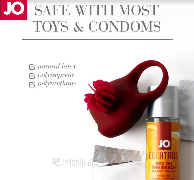 Гель на водной основе с использованием глицерина растительного происхождения и обладает вкусом одного из самых популярных коктейлей Секс на пляже, оттеняющимся персиком, клюквой и апельсином, которые создадут приятную сладость. Абсолютно безопасен для проглатывания, отчего оральные ласки будут незабываемыми и подойдет для вагинального секса, так как не нарушает микрофлору и pH баланс влагалища. Обеспечивает длительное скольжение, не вызывает липкости и скатывания, легко смывается водой. Совместим с материалами большинства игрушек. Не имеет в составе сахара и подсластителей, может добавляться в напитки и применяться в качестве топпинга.