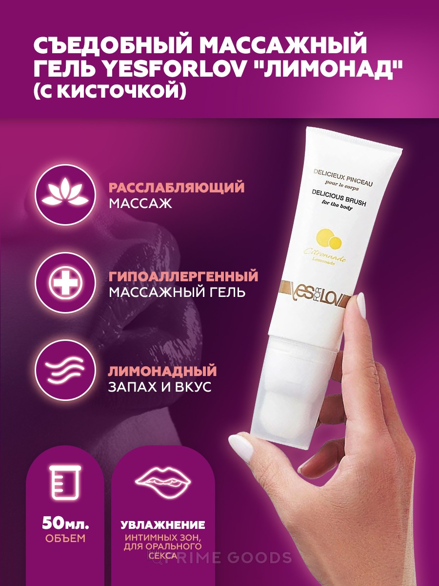 - Гель массажный YESforLOV съедобный "Лимонад", с кисточкой 50 мл