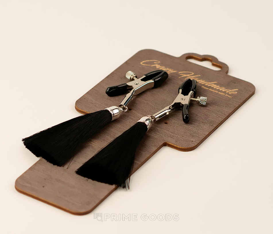 - Зажимы на соски «прищепки» с кисточками из шелка черные