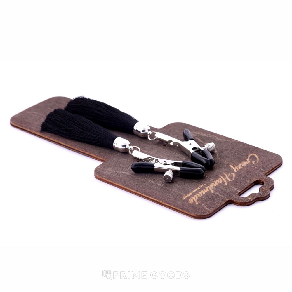 Зажимы на соски «прищепки» с кисточками из шелка черные