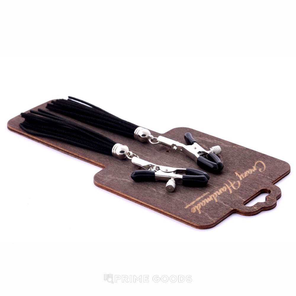 Зажимы на соски «прищепки» с кисточками из замши черные