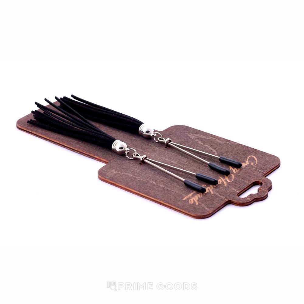- Зажимы на соски «вилки» с кисточками из замши, черный
